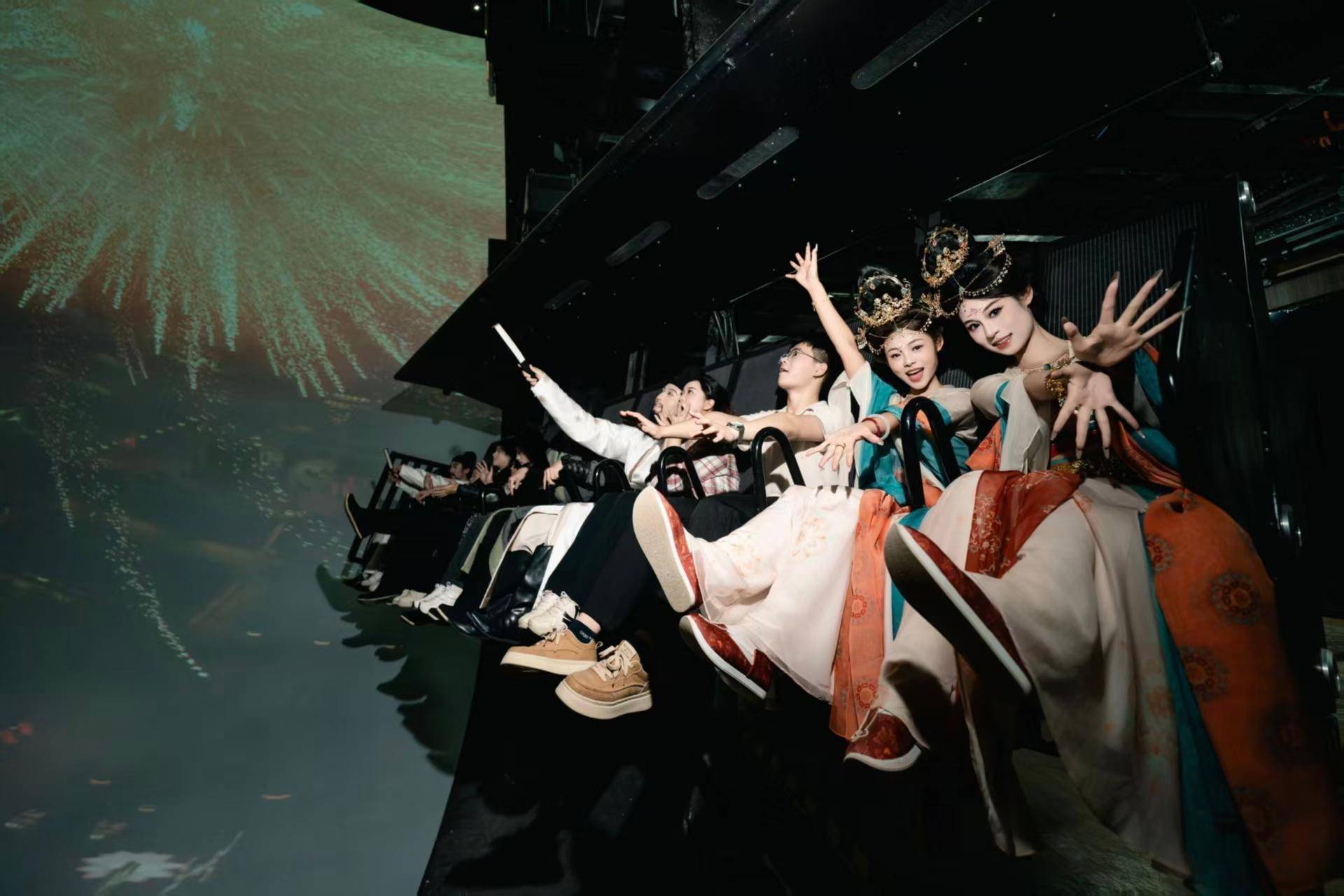 系好安全带,随着灯光渐暗,裸眼3D技术在林琅眼前勾勒出的盛唐画卷——“飞越”朱雀大街,与虚拟李白举杯对诗,伸手仿佛能触碰胡姬舞动的衣袖。球形巨幕、裸眼3D4轴动作平台、全感官模拟系统……这座经科技感十足的曲江飞行剧院,让林琅对千年古都有了全新的认识。